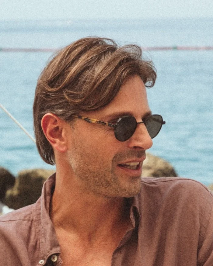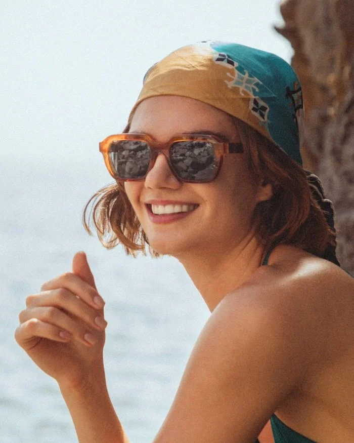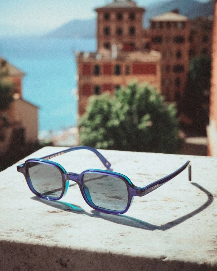 The coastal shores are alive as the sun beats down on fine sand, where L.G.R's Italian summer eyewear feels right at home on chic beachgoers.