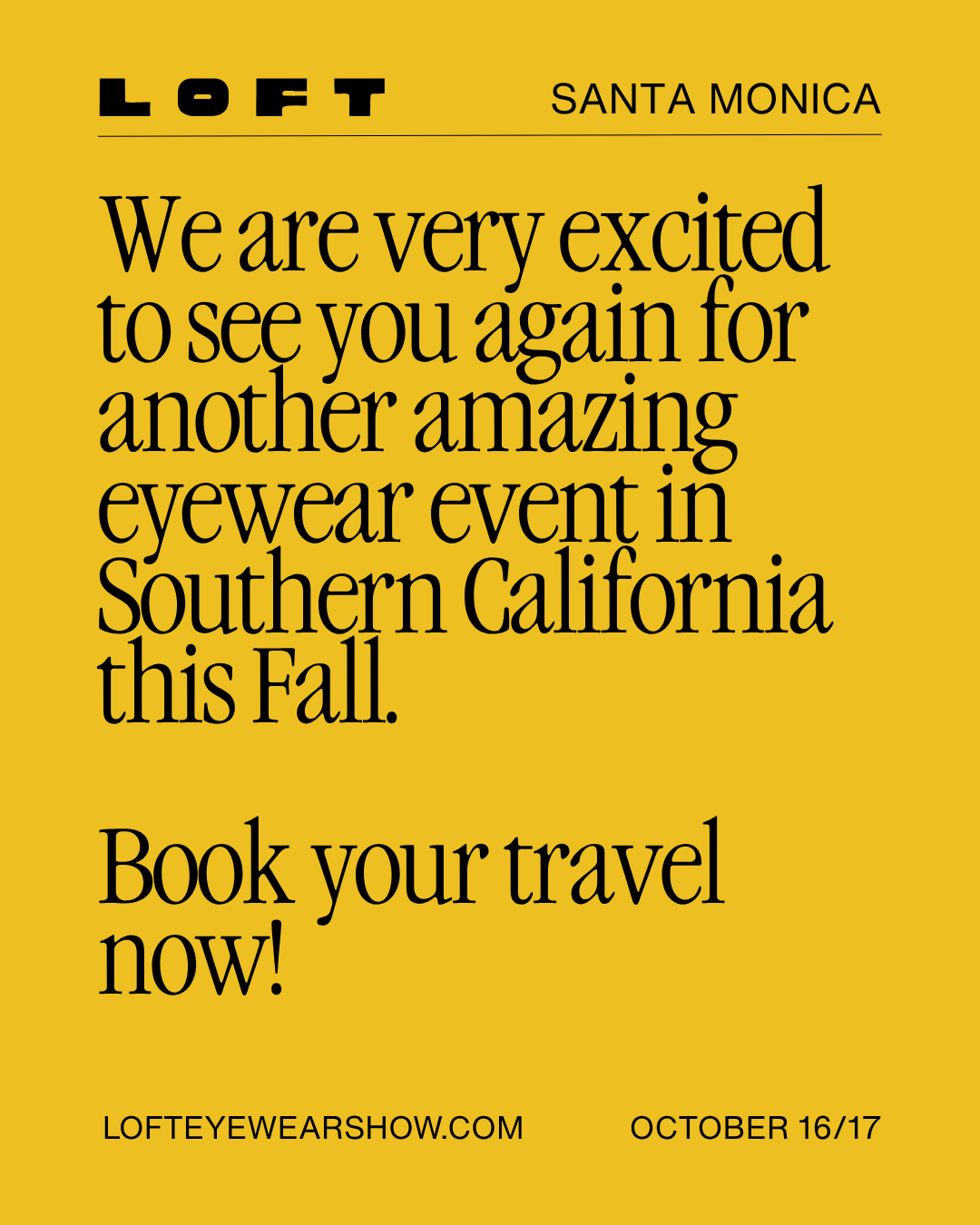The list of vendors and appointment booking link for this year’s event will be available soon through our social channels and on the LOFT Eyewear Shows website at www.lofteyewearshow.com