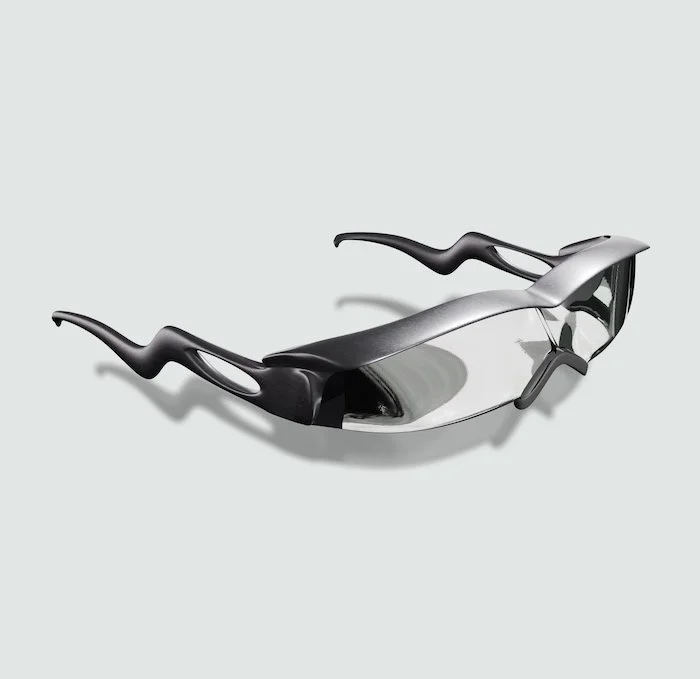 Visor-style glasses inspired by the Silver Surfer, with a fluid and organic design that evokes speed, wind, and solitude. They transform the gaze without any superfluous embellishment.