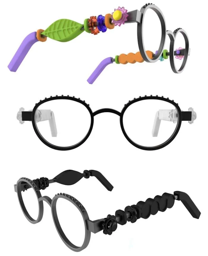 Inclusive glasses for people with ADHD or autism. Modular and customizable frames with sensory gadgets. Sustainable, ethical, and adaptable design.