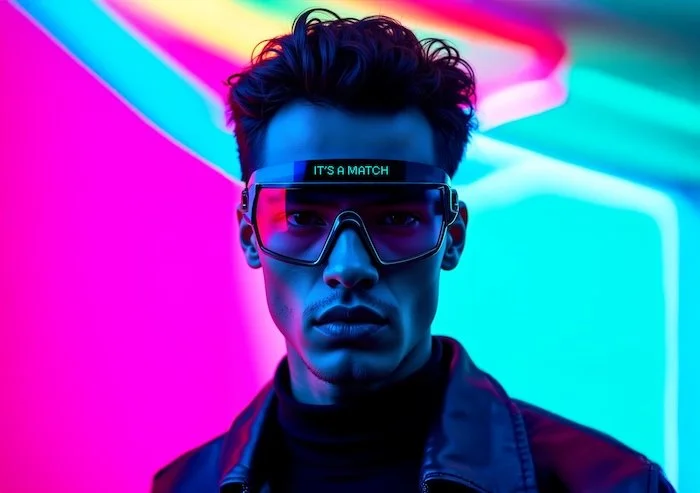 Glasses featuring a built-in love-matching system inspired by dating apps. Real-time display and interactions designed to spark in-person connections.